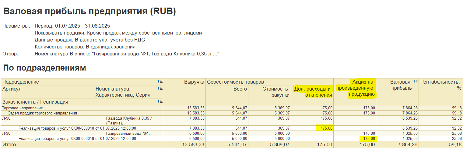 «НДС начисленный», «Выручка от реализации без НДС» рассчитываются автоматически