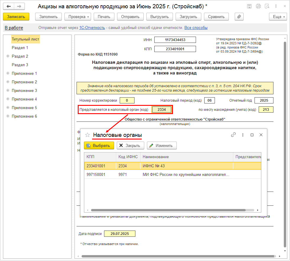 Реквизиты шапки корректировочного уведомления документа будут заполнены по документу основанию. Реквизит Номер корректировки будет равен + 1 от максимального номера корректировки из цепочки документов с таким же первичным уведомлением. Номер корректировки можно исправить вручную.