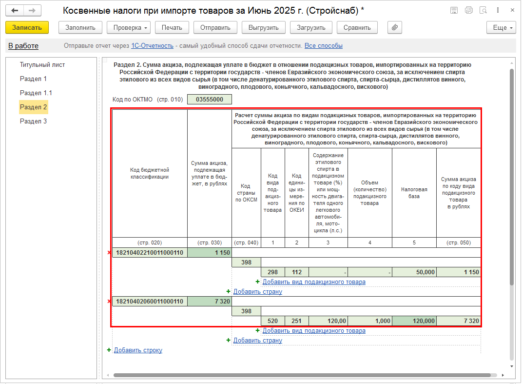 Если разрешен оборот немаркированного остатка и указана часть марок (кодов ОСУ), то в электронном документе (УПД) в основной таблице указывается общее количество отгружаемого товара, а в таблице "Номера средств идентификации товаров" будут указаны конкретные марки (коды ОСУ).