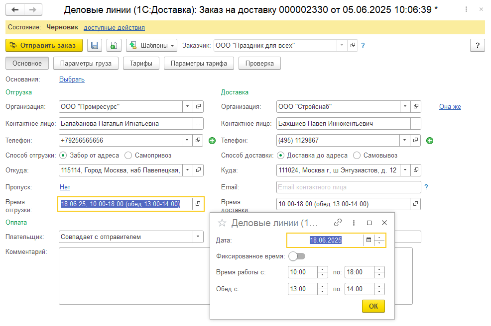 Фиксация времени отгрузки/доставки влияет на стоимость перевозки.