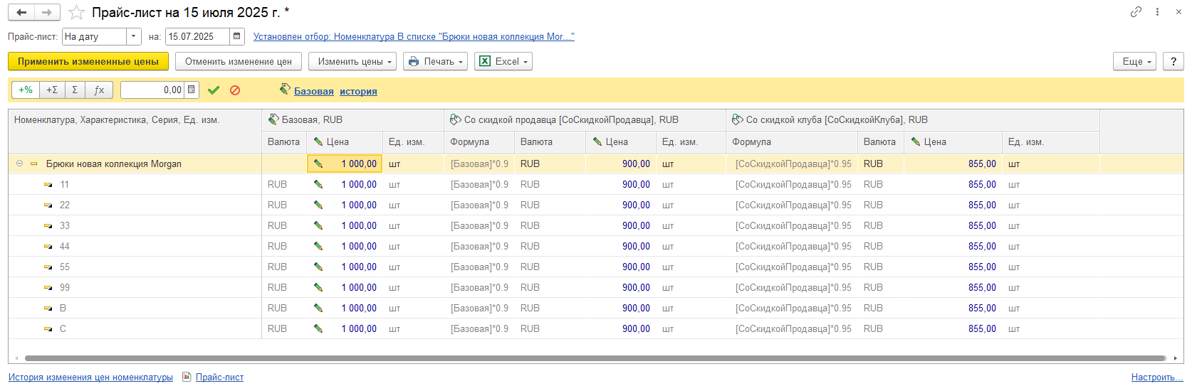Предусмотрен задание трех видов цен: