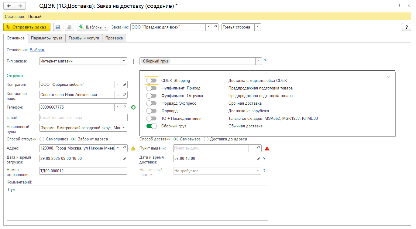 тарификации СДЭК классифицирует заказы по типам и дополнительным типам, которые