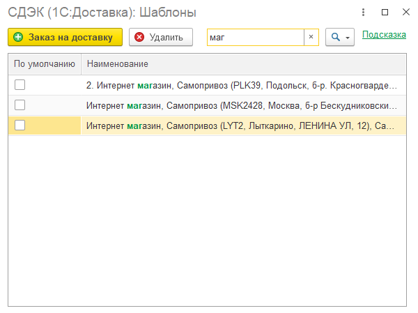 отображается на закладке Доставка в связанных