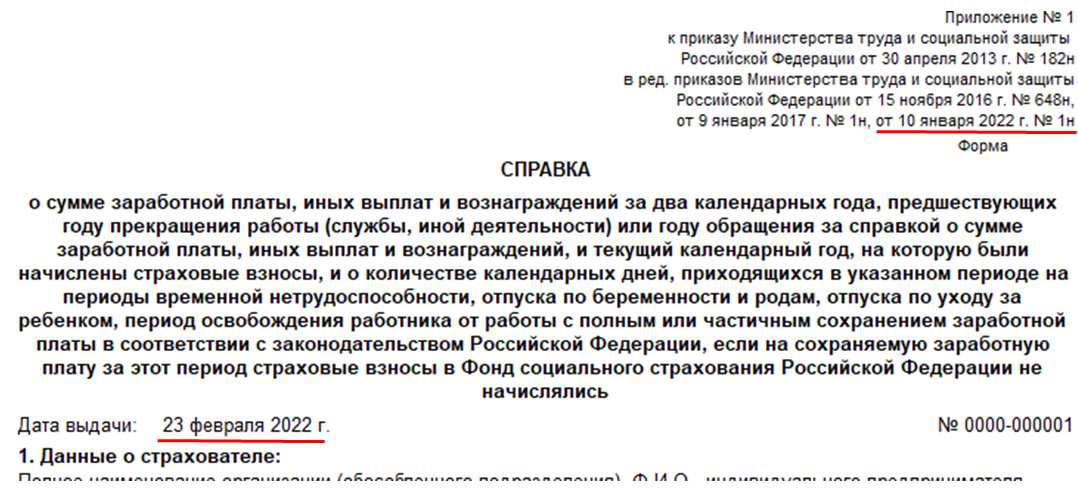 Обновлена форма исходящей справки о заработке для расчета пособий (182н), согласно Приказу Минтруда РФ от 10.01.2022 № 1н.
