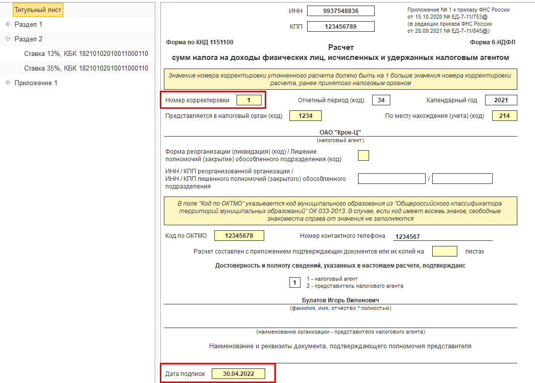 ФНС сообщает, что следует представить уточненный Расчет 6-НДФЛ за 2021 год (п. 6 ст. 81 НК РФ). Зачет излишне удержанного налога в счет платежей 2022 года невозможен, т. е. предусмотрен только возврат налога за 2021 год из ИФНС. В программе перерасчет налога за 2021 можно выполнить документом "Перерасчет НДФЛ", после чего составить корректирующую отчетность.