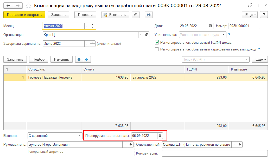 Внимание! Расчет суммы компенсации теперь производится не на дату документа, а на планируемую дату выплаты.