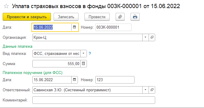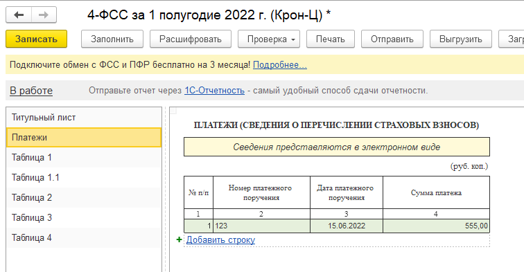 Реализовано заполнение раздела "Платежи" по данным введенных в программу документов "Уплата страховых взносов в фонды".