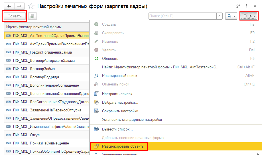 Такие формы как, например, Т-1а, содержат информацию о планируемой оплате труда – показывать такой документ каждому из сотрудников кажется недопустимым. Поэтому пользователям предлагается возможность самостоятельно решать, нужно ли их передавать в кабинеты. Если нужно, то необходимо добавить соответствующую запись в список "Настройки печатных форм" (раздел Настройка – Сервис).