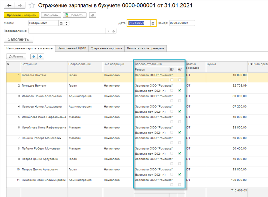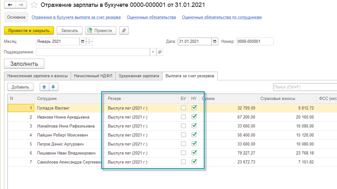 Учет резервов – опциональный. Функционал включается в разделе "Настройка – Расчет зарплаты", флаг "Использовать резервы по оплате труда".