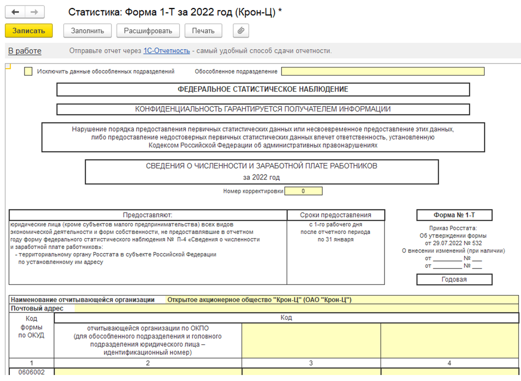 Обновлены формы 1-Т (проф) и 1-Т, в соответствии с Приказом Росстата от 29.07.2022 № 532.
