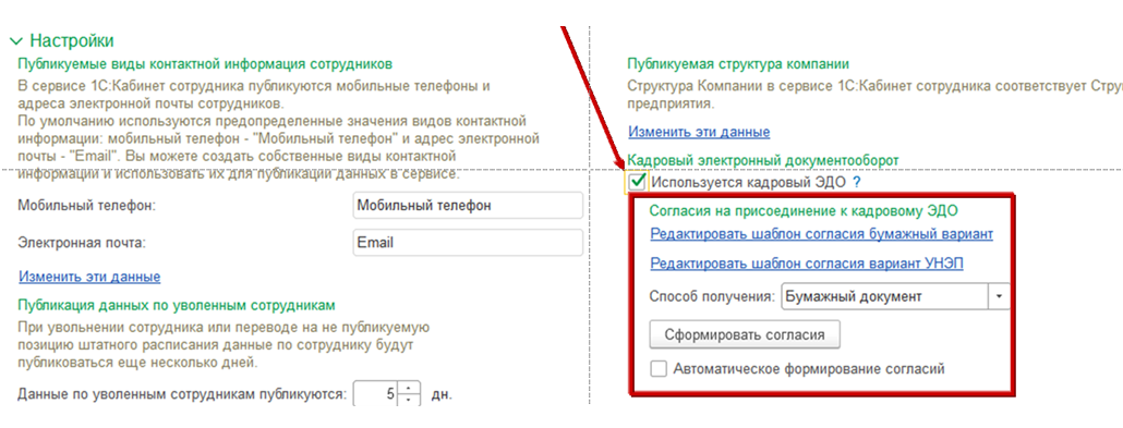 Реализована возможность хранения и учета согласий сотрудников на присоединение к КЭДО (начиная с версии сервиса 5.0.3.66):