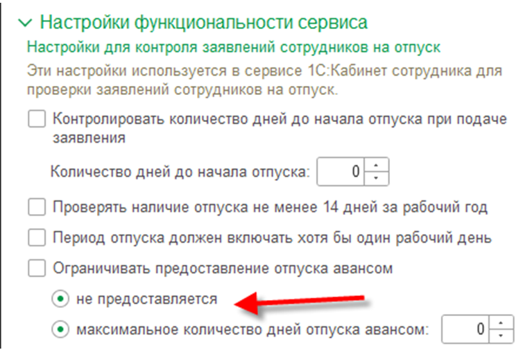 Добавлена возможность запрета использования отпуска авансом: