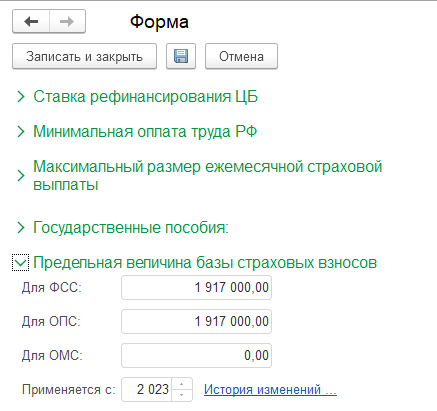 Новая единая предельная величина облагаемой базы для начисления страховых взносов на 2023 год, в соответствии с Постановлением Правительства РФ от 25.11.2022 № 2143. Сам расчет планируется реализовать в очередной версии.