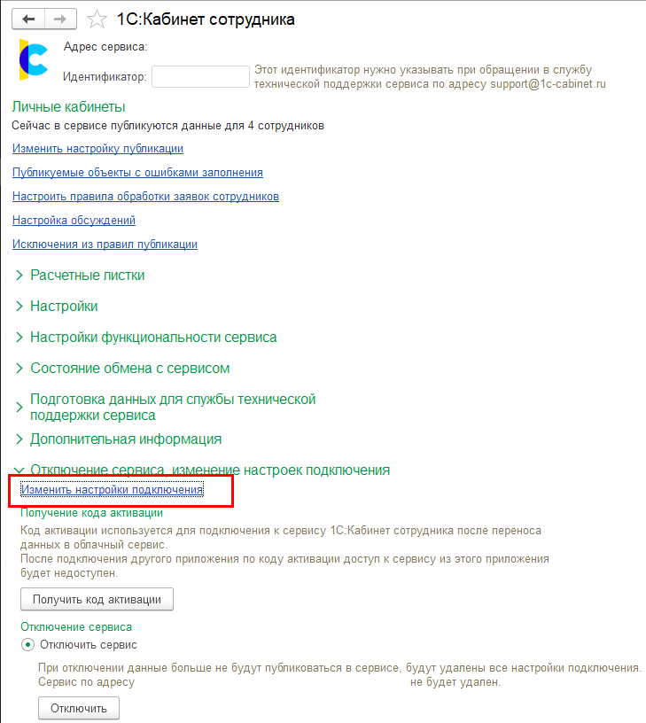 Добавлена возможность изменения настроек подключения к сервису при изменении варианта его использования на использование в локальной сети предприятия.