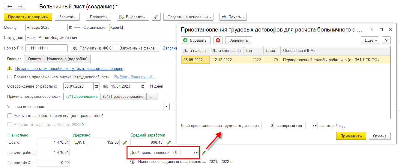 Реализован учет периодов мобилизации сотрудников при расчете среднего для больничных с 2023 года, согласно Федеральному закону от 07.10.2022 № 379-ФЗ.