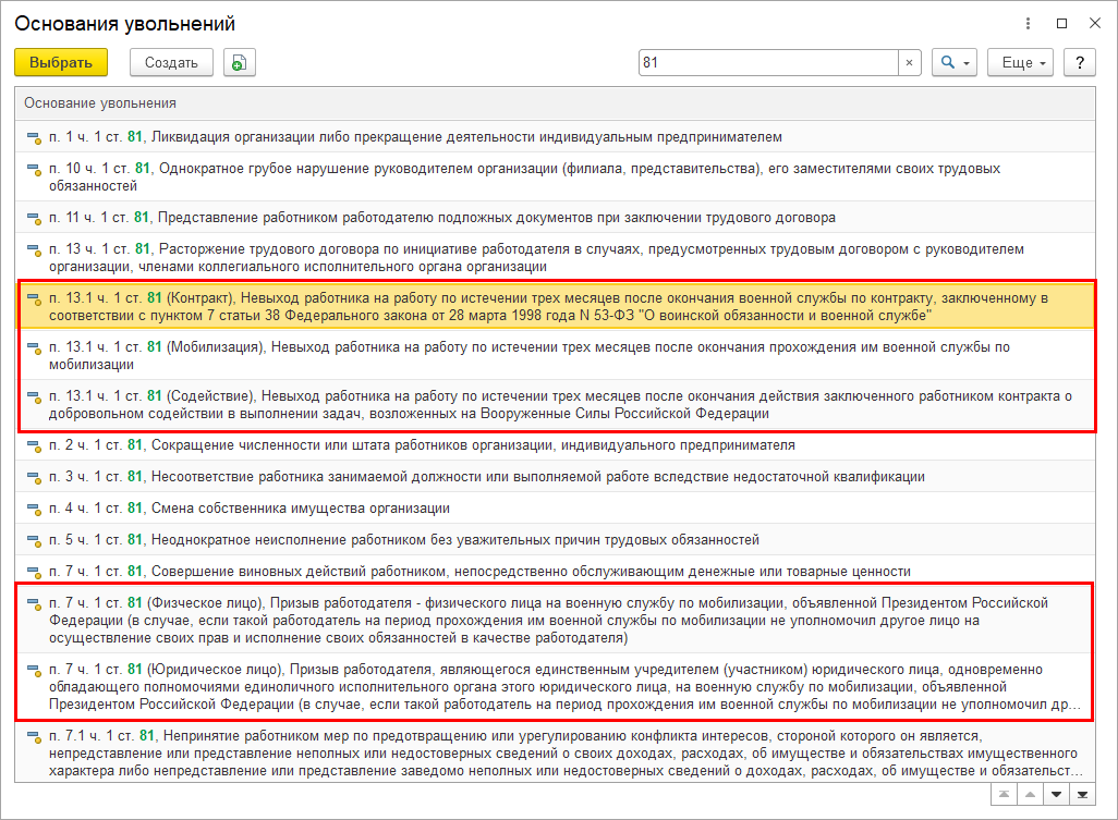 Добавлены новые основания увольнения в связи с мобилизацией.