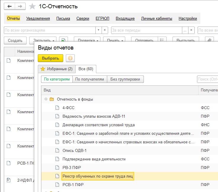 В 1С-Отчетность добавлен "Реестр обученных по охране труда лиц" (без автозаполнения).