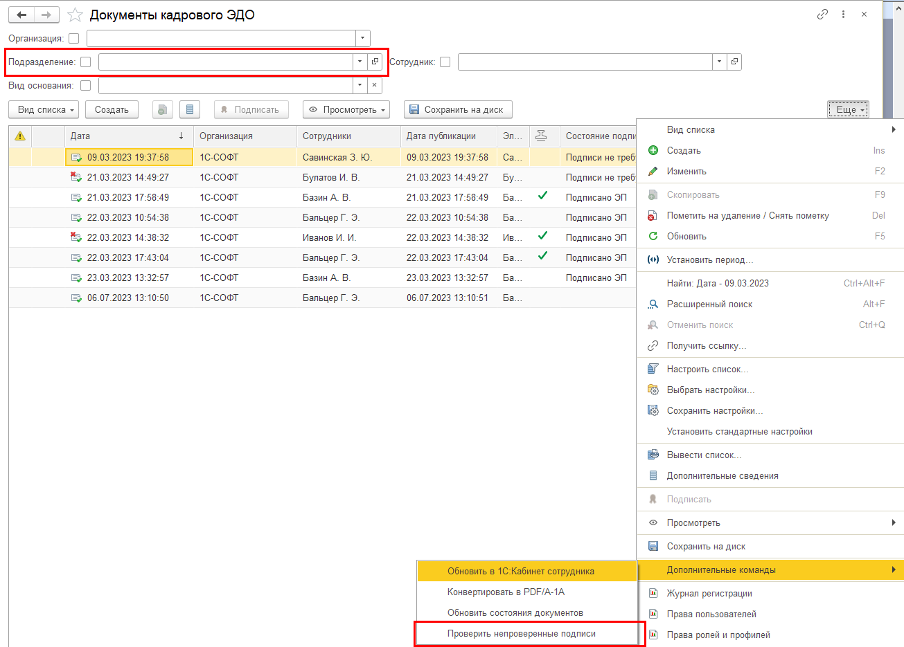 Команда "Заполнить показатели" преобразована в подменю. Пункт "по сотруднику" заполняет показатели по сотрудникам из выделенных строк в табличной части. Если по одному сотруднику есть несколько строк, а выделена одна строка, то показатели заполнятся по всем строкам этого сотрудника. Пункт "по документу" – заполняет по всей табличной части (как и было ранее по команде "Заполнить показатели").