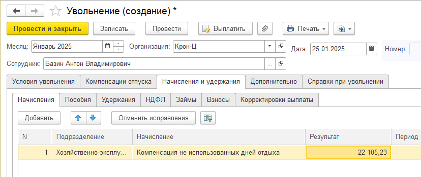 Реализована возможность компенсировать не использованные отгулы при увольнении, в соответствии с Федеральным законом от 30.09.2024 № 339-ФЗ.