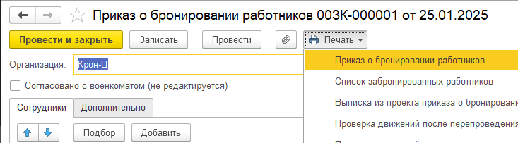 Добавлена печатная форма "Приказ о бронировании работников" для одноименного документа.