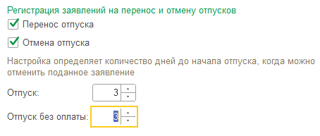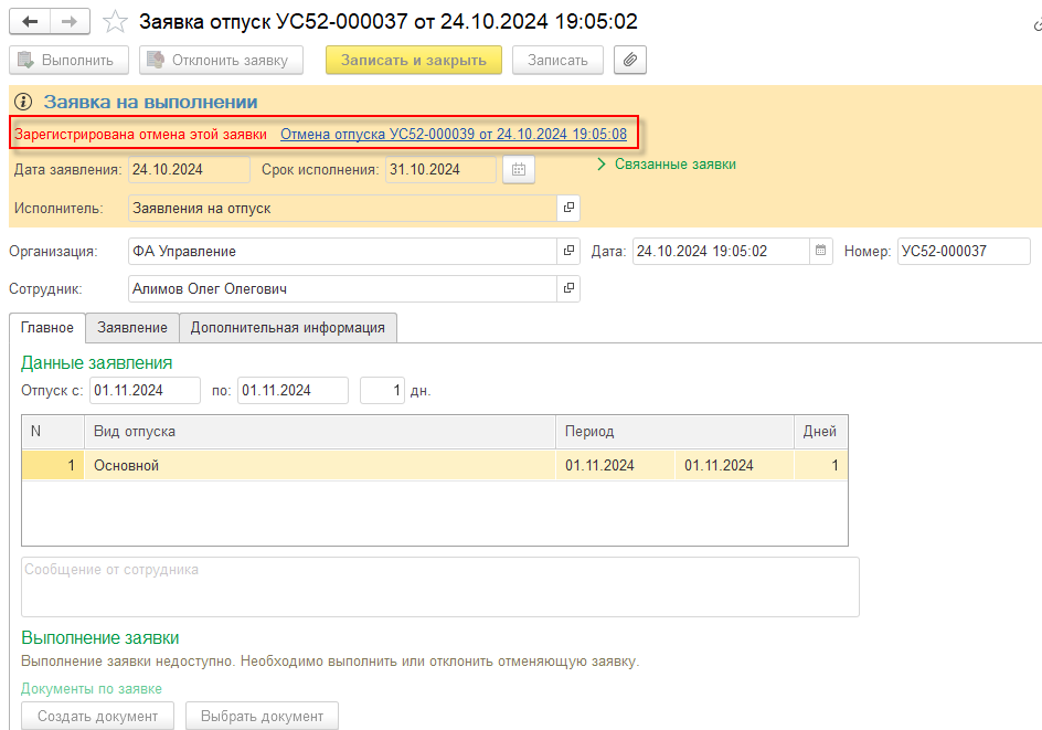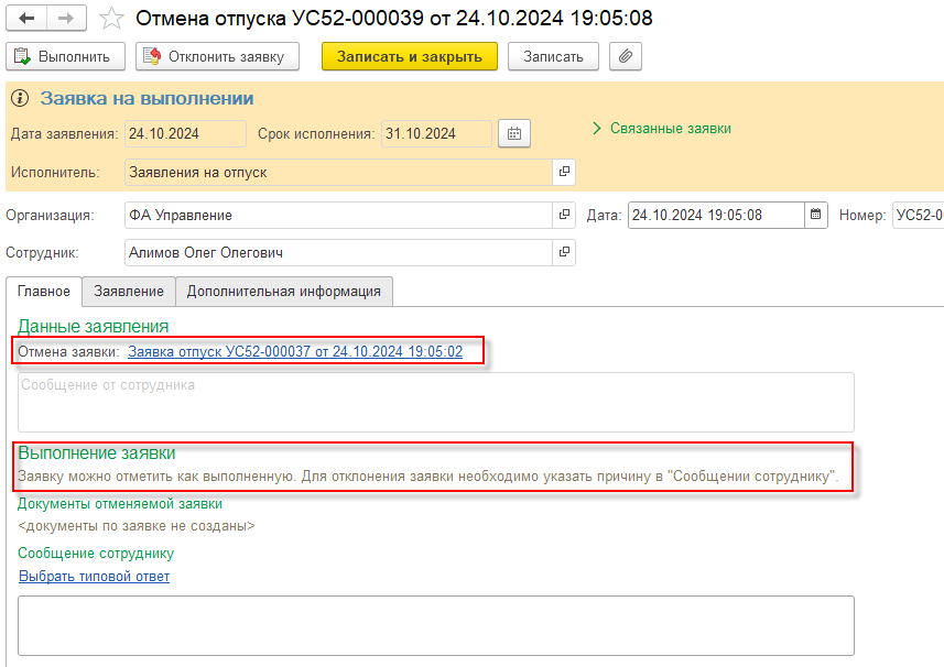 Реализована поддержка заявки на перенос отпуска и отзыв заявки на отпуск.