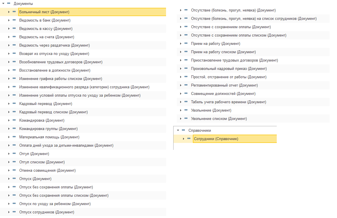 Если какие-либо печатные формы, варианты отчетов и регламентированные отчеты (например, "Расчет среднего заработка") идентичны с точки зрения хранения в Архиве, то их рекомендуется добавлять в один вид документа, чтобы в Архиве не было повторяющихся видов документов.