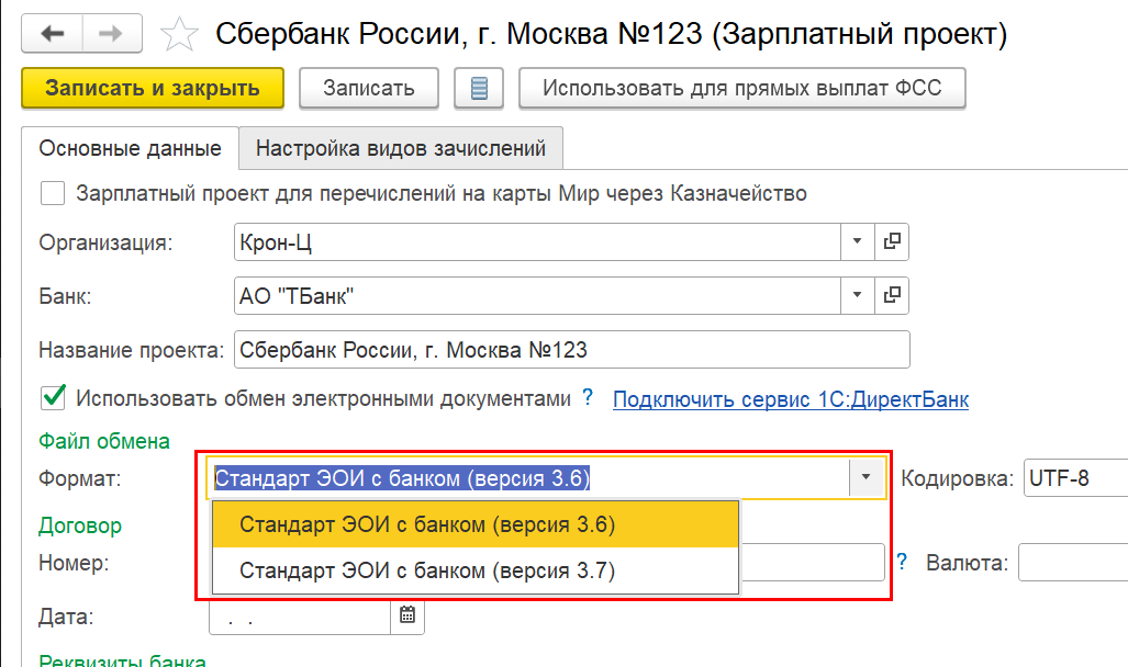 Скрыты неактуальные версии формата файлов обмена с банками по зарплатным проектам.