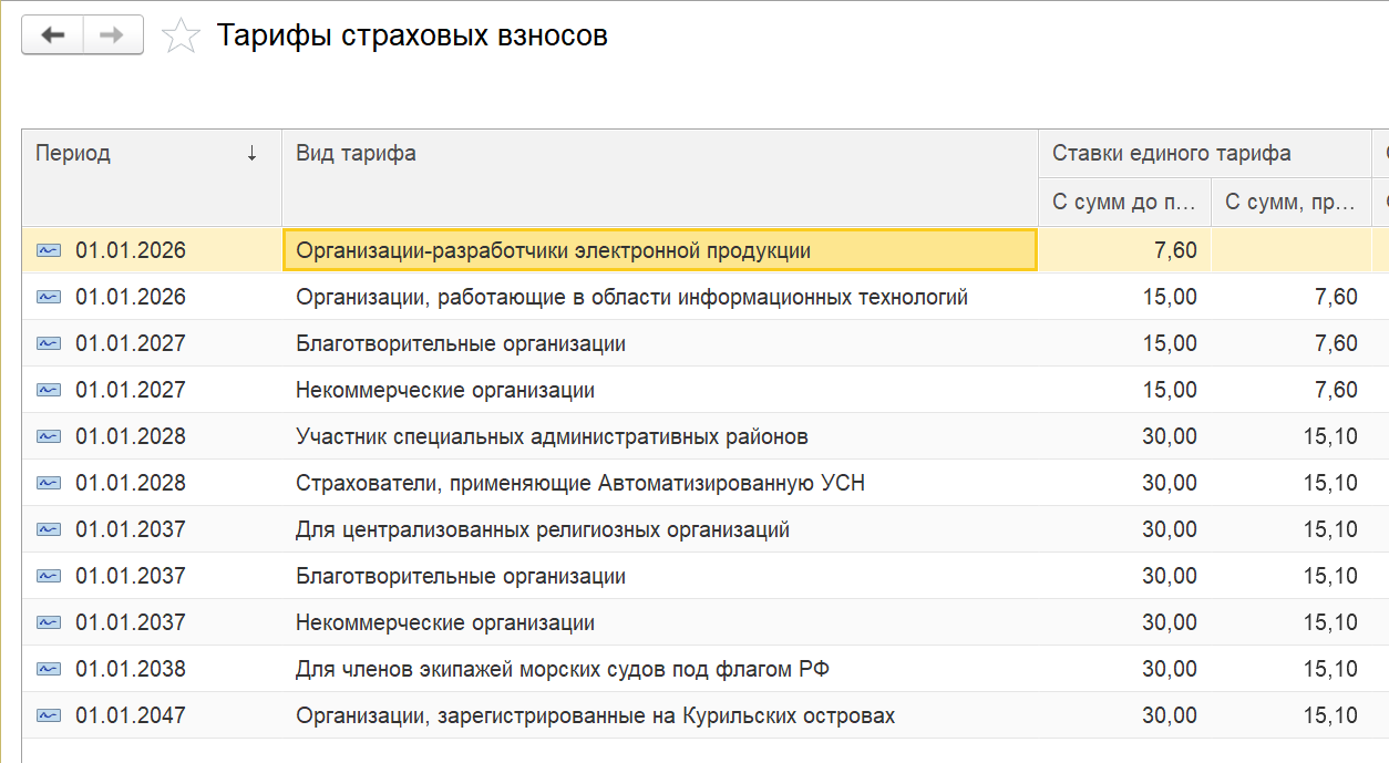 Произведено изменение тарифов страховых взносов на 2026 год.
