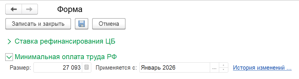 Изменен размер МРОТ с 1 января 2026 года (27 093 руб.), в соответствии с Федеральным законом "О внесении изменения в статью 1 Федерального закона "О минимальном размере оплаты труда"...".