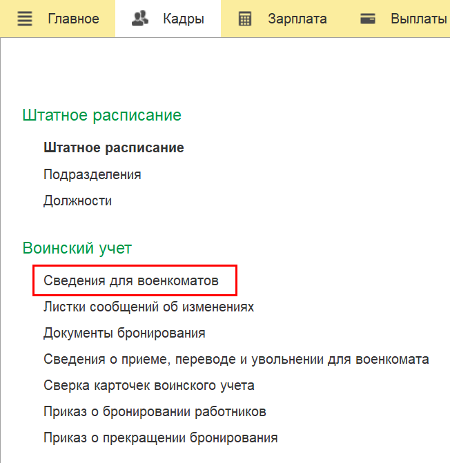 Для пяти форм воинского учета добавлены документы (в дополнение к отчетам) в новый журнал "Сведения для военкоматов":