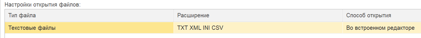 Чтобы по кнопке "Открыть файл" файл открывался во встроенном редакторе, необходимо добавить расширение csv в персональные настройки (Настройка - Персональные настройки - Работа с файлами):