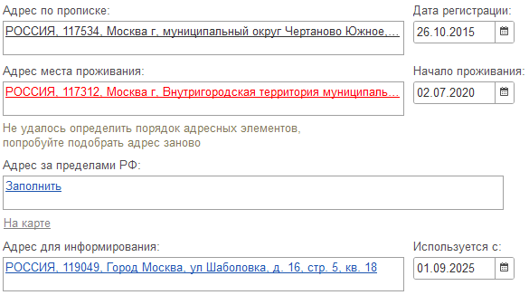 В личные данные сотрудников добавлены даты начала действия адреса проживания и адреса информирования