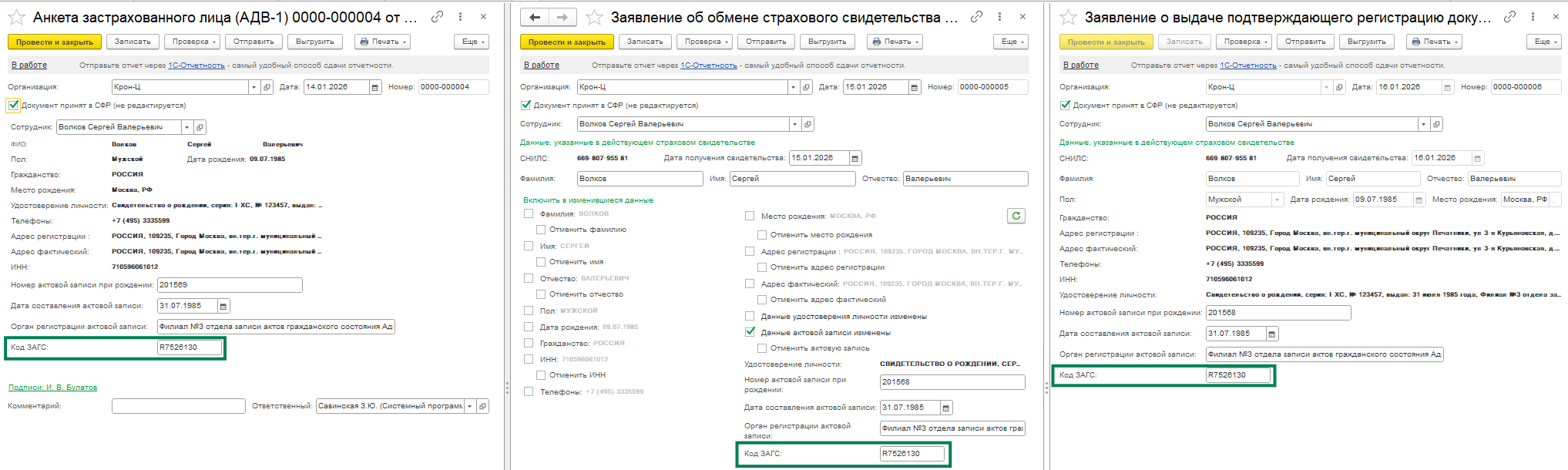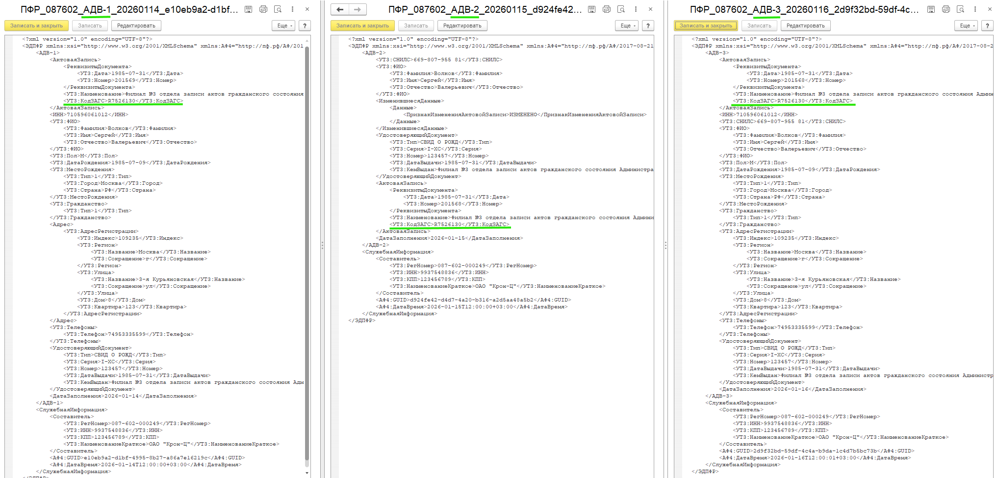 В формате АДВ-1, АДВ-2, АДВ-3 добавлено поле КодЗАГС (если у