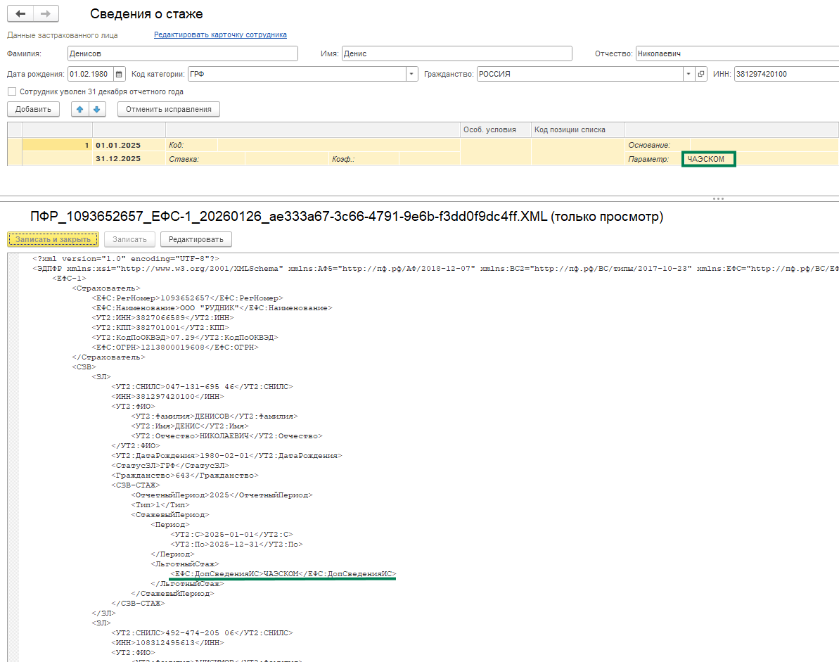 Выполнено обновление подразделов 1.1 и 1.2 формы ЕФС-1,