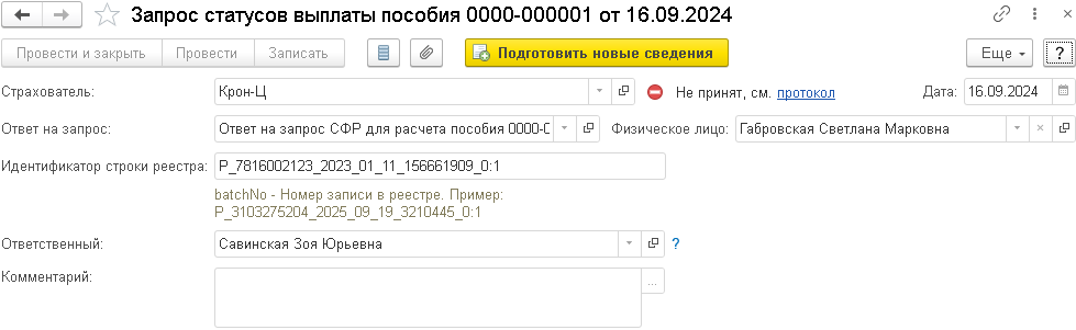 В документ "Статусы выплаты пособия" (сообщение 8510)