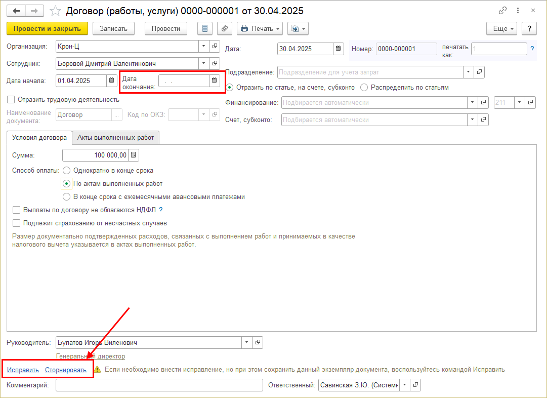 Реализована возможность исправления договоров ГПХ и перерасчета начислений по договорам, ввода договоров с неизвестной датой окончания.
