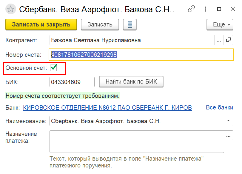 Основной банковский счет