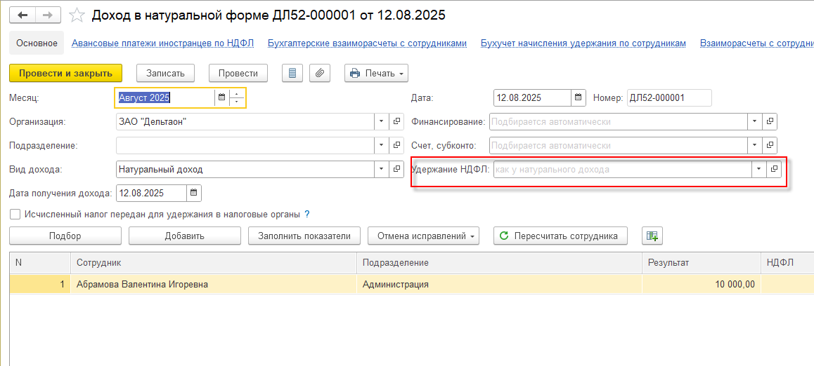 Добавлена возможность в документе "Доход в натуральной форме" явно указать статью финансирования и статью расходов для НДФЛ (если включен учет по статьям финансирования).