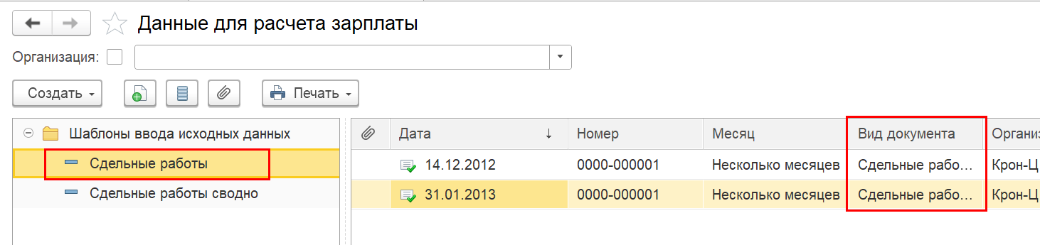 Реализована группировка в списке документов "Данные для расчета зарплаты" по виду документа.