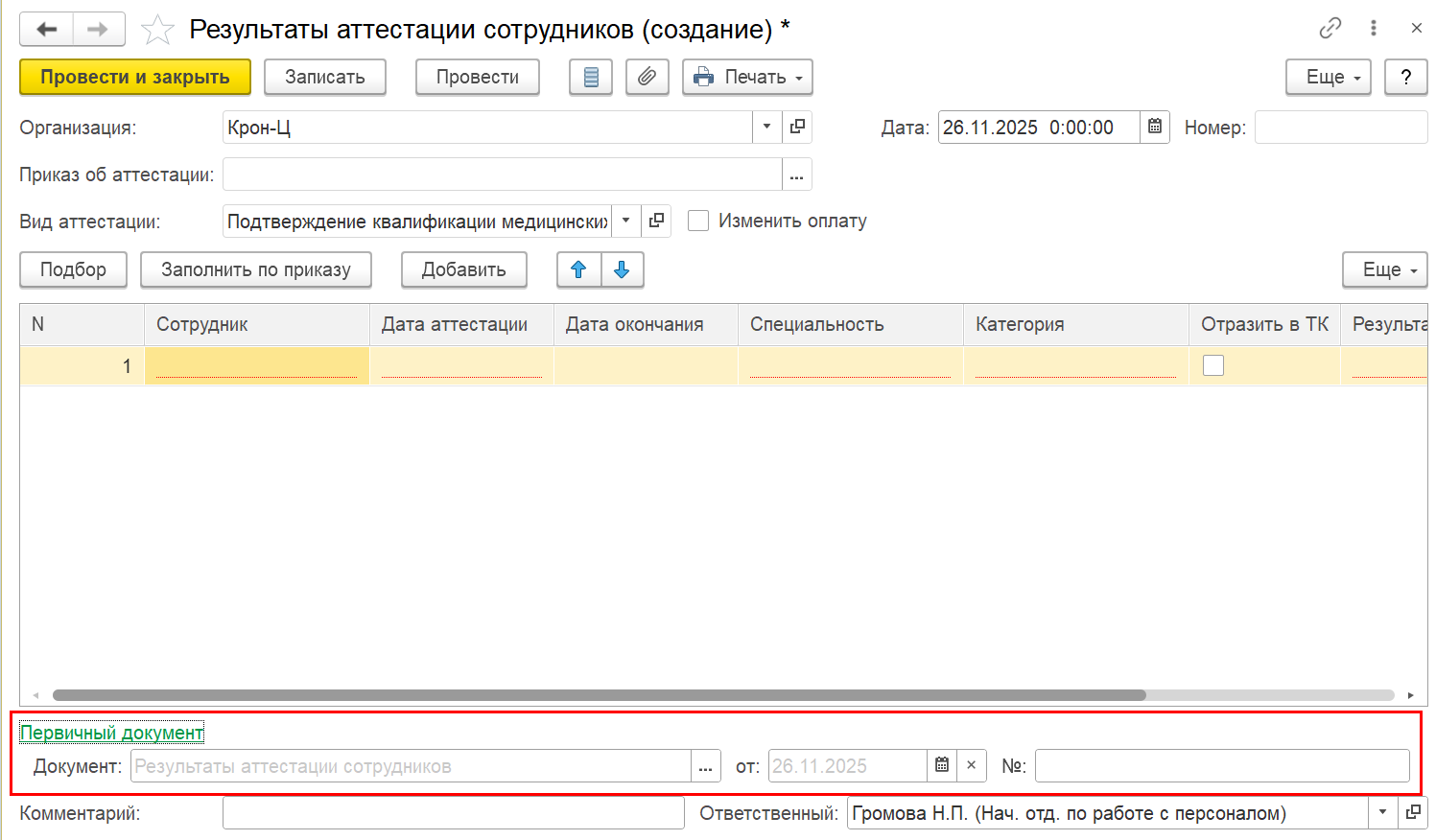 Добавлена возможность в документе "Результаты аттестации" ввести реквизиты первичного документа.