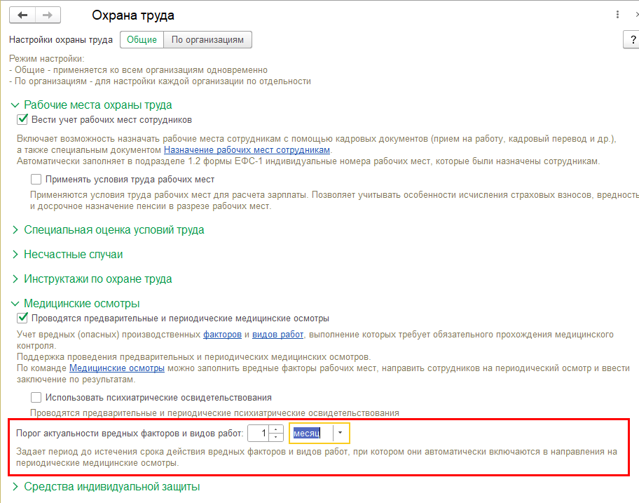 Добавлена настройка периода актуальности вредных факторов для периодических медосмотров.