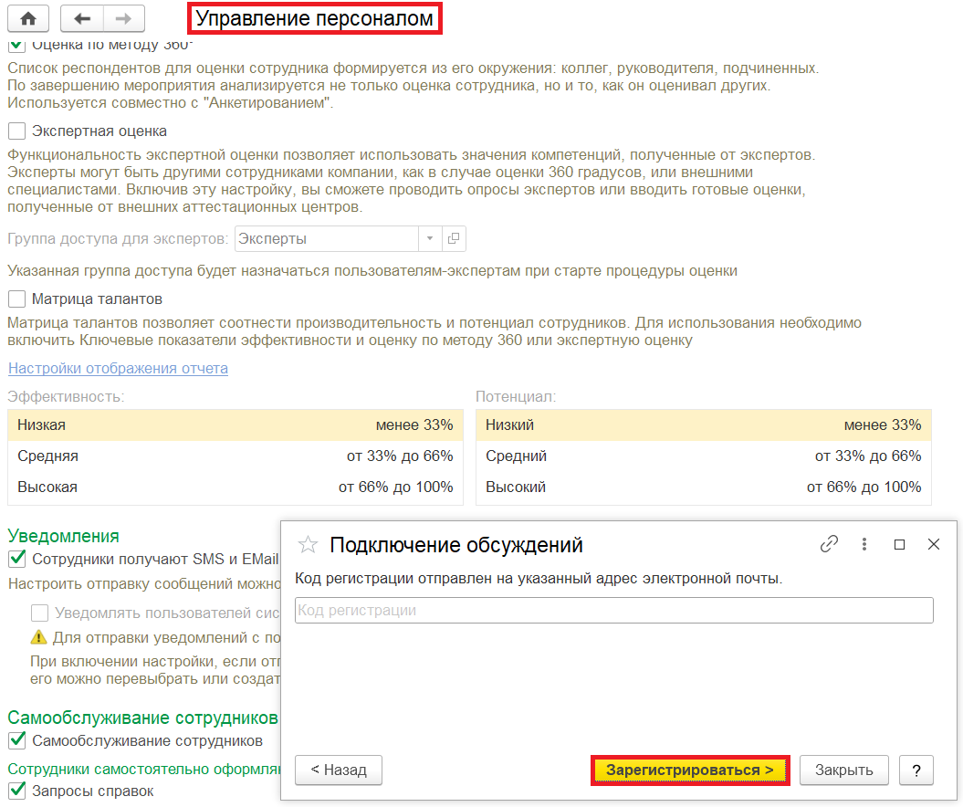После того как в базе подключены «Обсуждения», можно перейти к настройке отправки уведомлений.