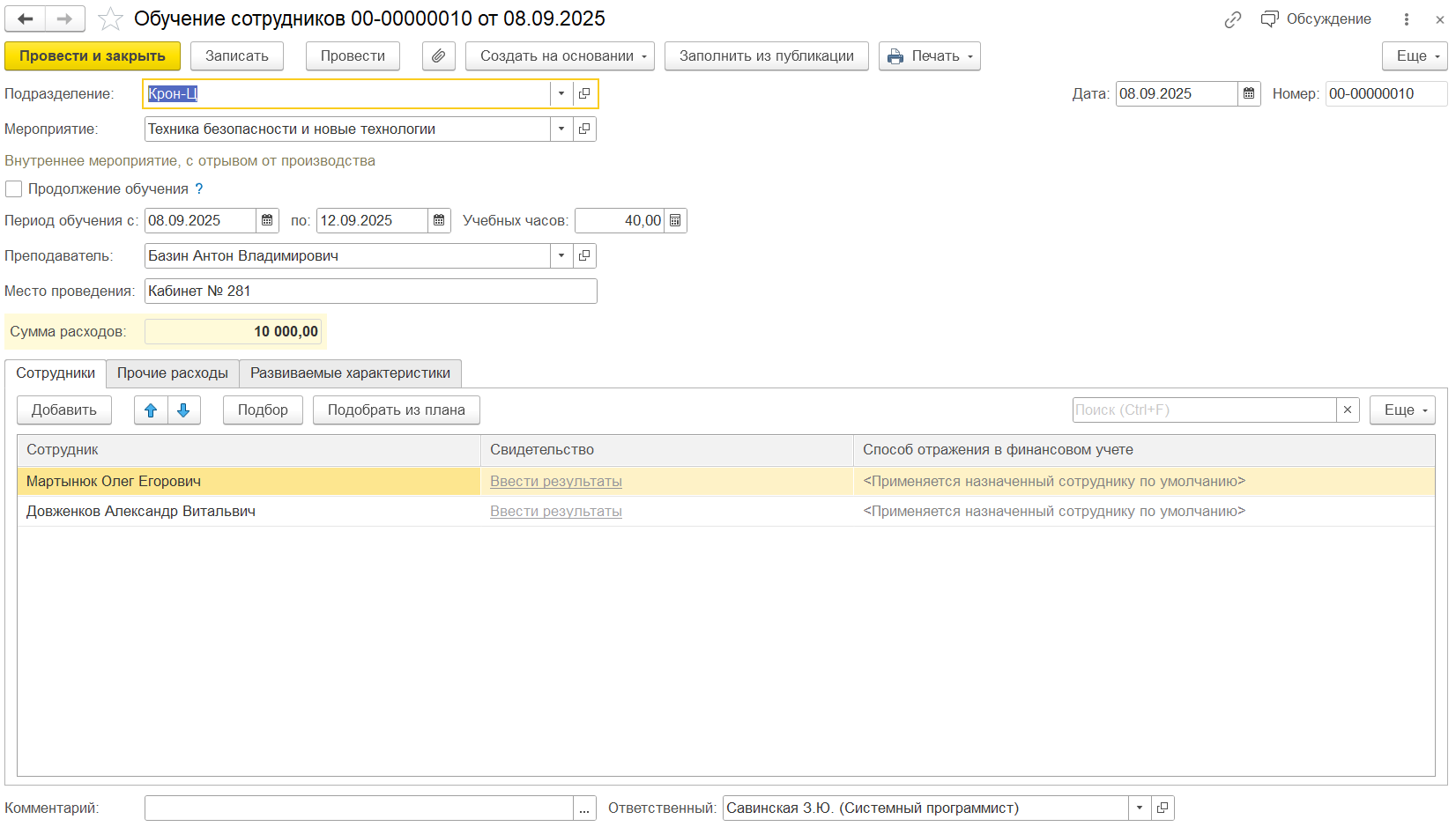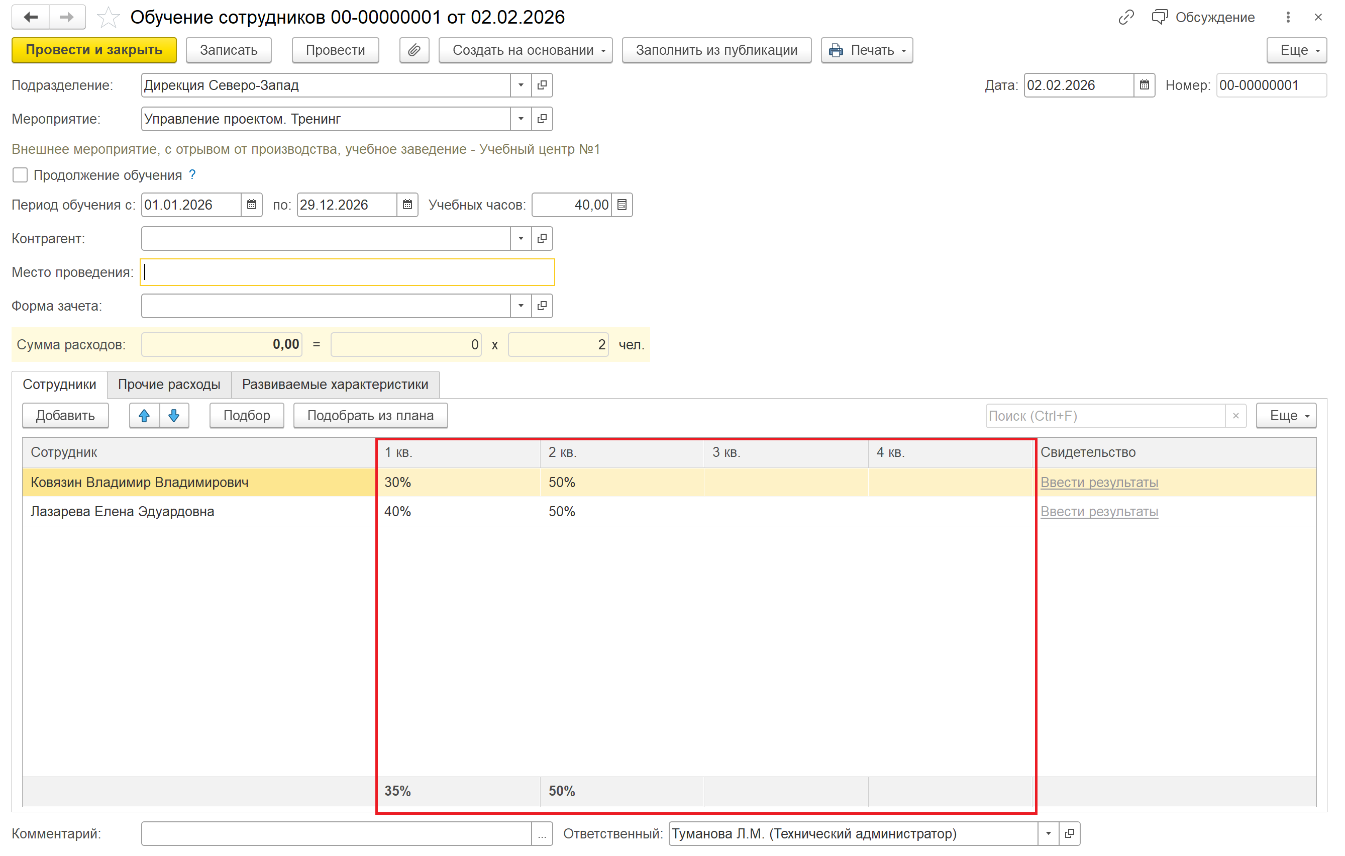 Внести прогресс можно и в документе “Обучение сотрудников”: