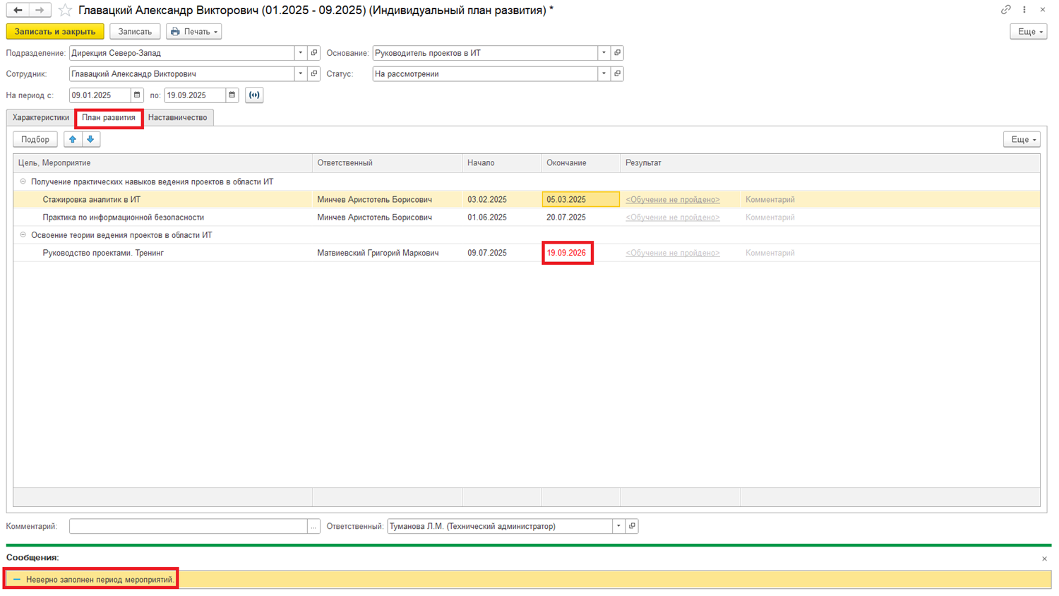 Здесь же добавлена проверка на периоды проведения мероприятий. Все они должны быть в рамках периода ИПР.