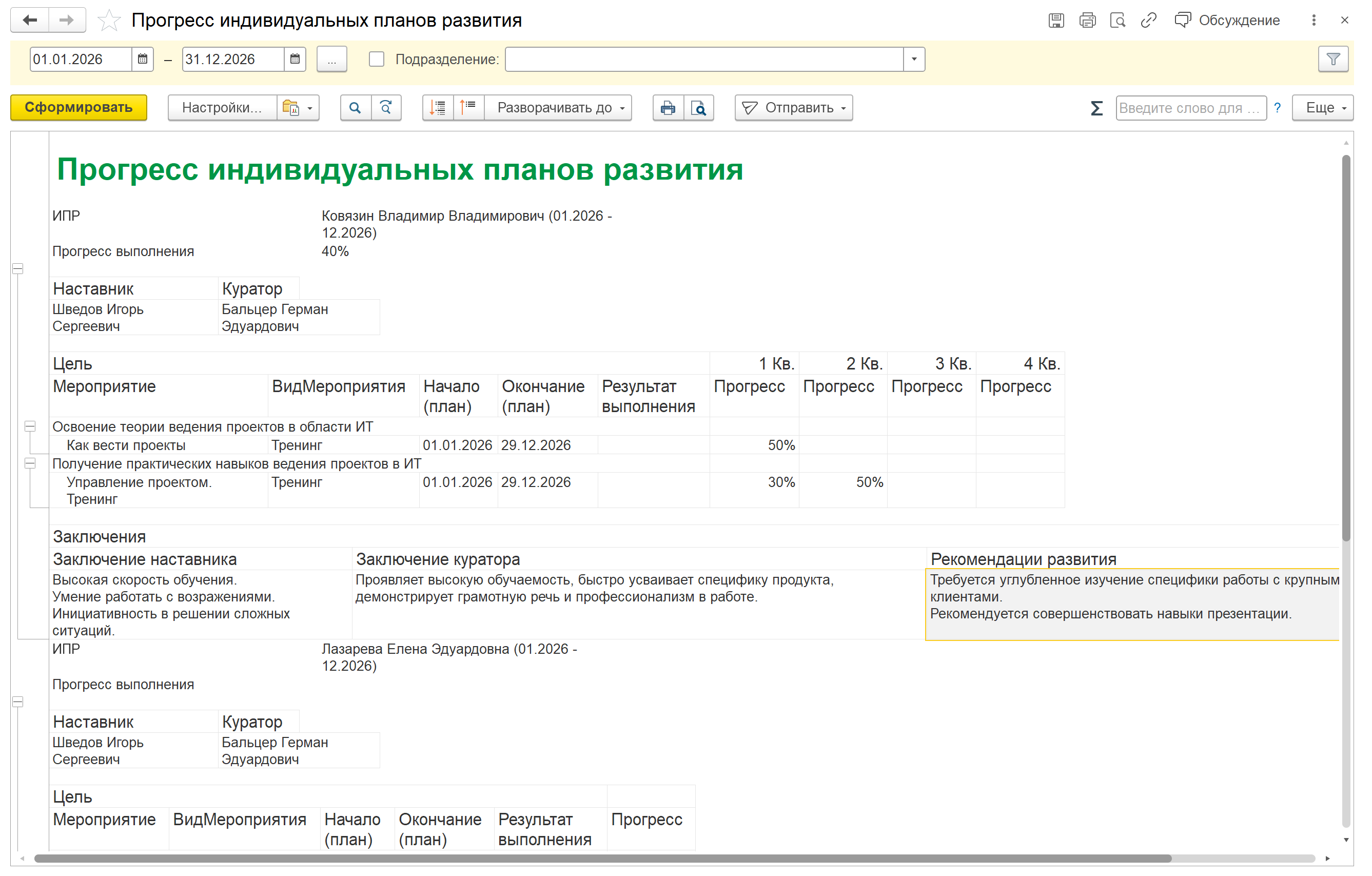 “Прогресс индивидуальных планов развития”: