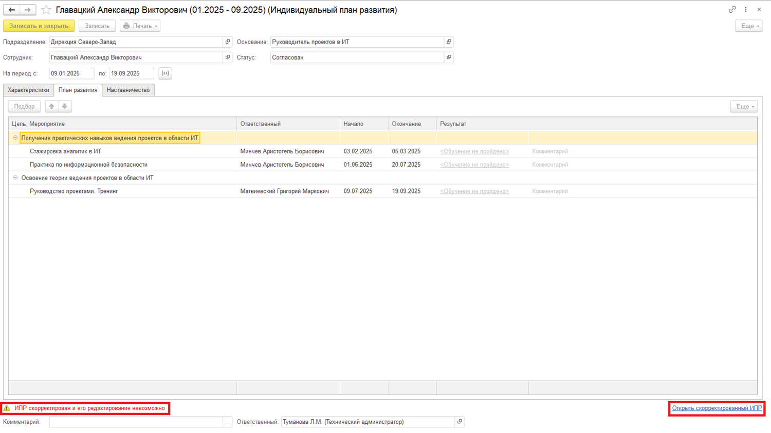 Если ИПР для сотрудника уже существует, мы можем открыть его из этого рабочего места: