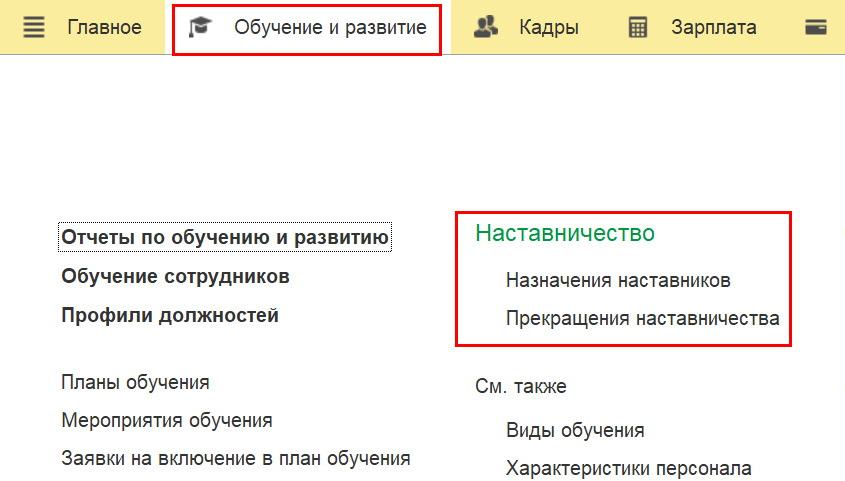обучения и развития сотрудников) появляется подраздел Наставничество.