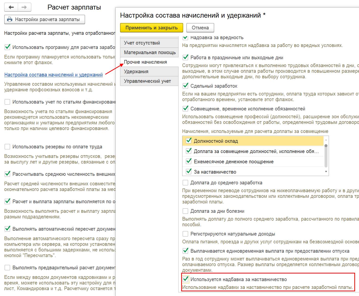 При расчете зарплаты учитывается надбавка за наставничество,