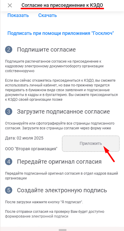 подписания согласия на присоединение к КЭДО с помощью приложения Госключ