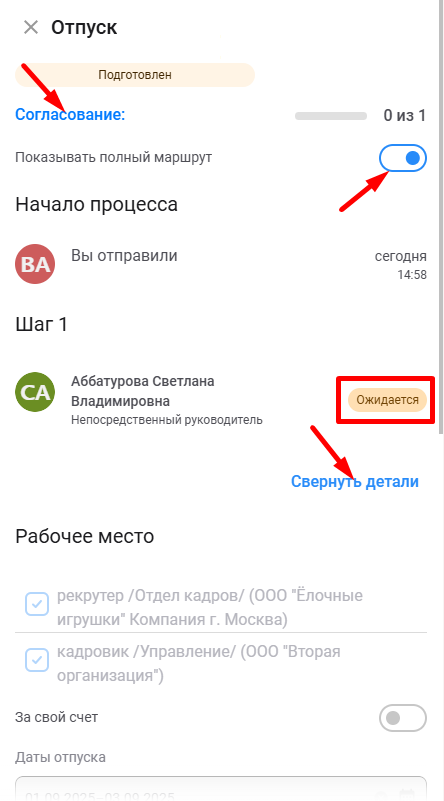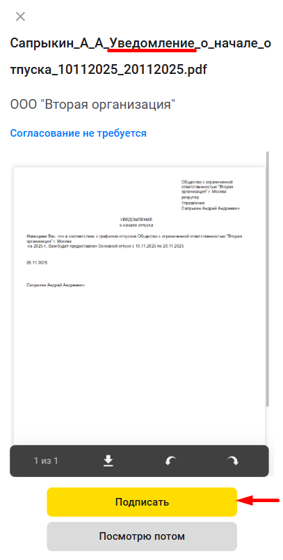 функционал по подтверждению отпуска, запланированного в графике отпусков.
